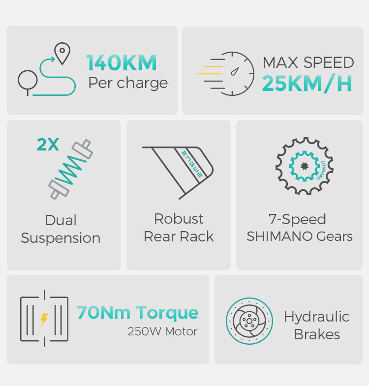 • Range: Up to 140 km (Pedal-Assist Mode)