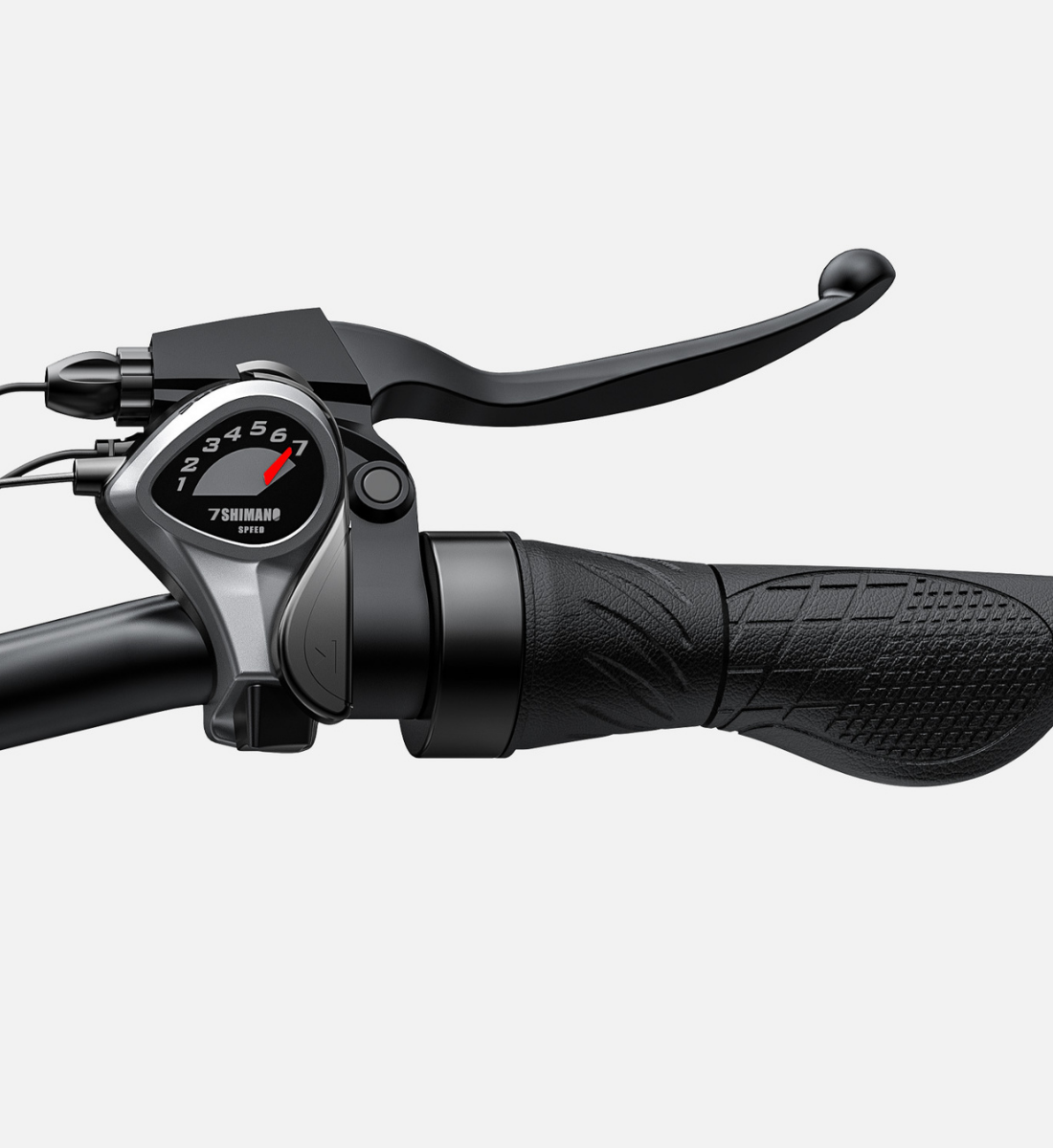 • Transmission: Comes with a Shimano 7-speed gear system, allowing for versatile riding across different terrains and inclines.