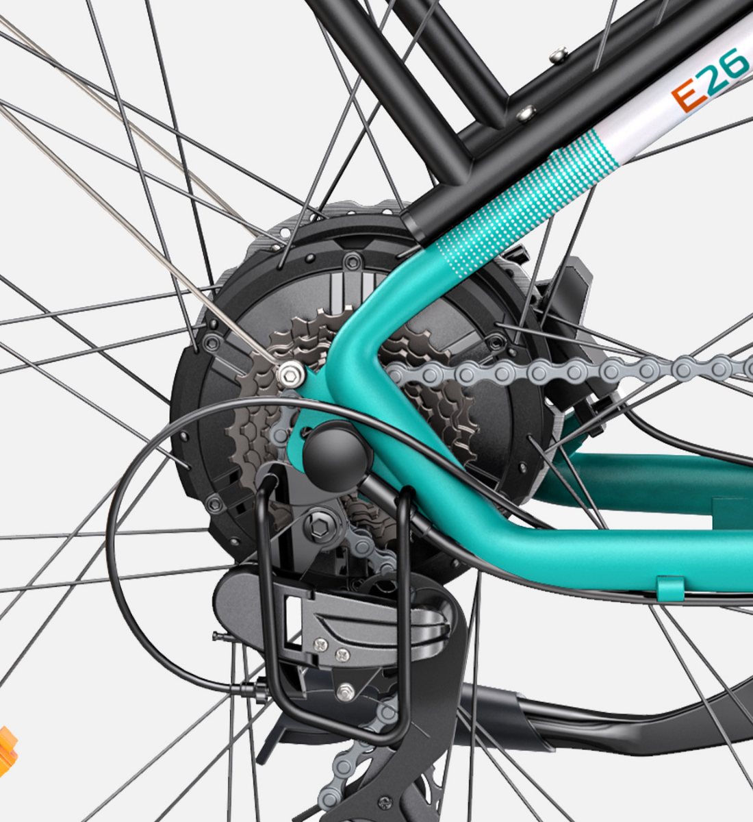 The ENGWE E26 is a robust all-terrain electric bike designed for both urban commuting and off-road adventures. Its powerful motor, substantial battery capacity, and durable construction make it a versatile choice for riders seeking performance and reliability.