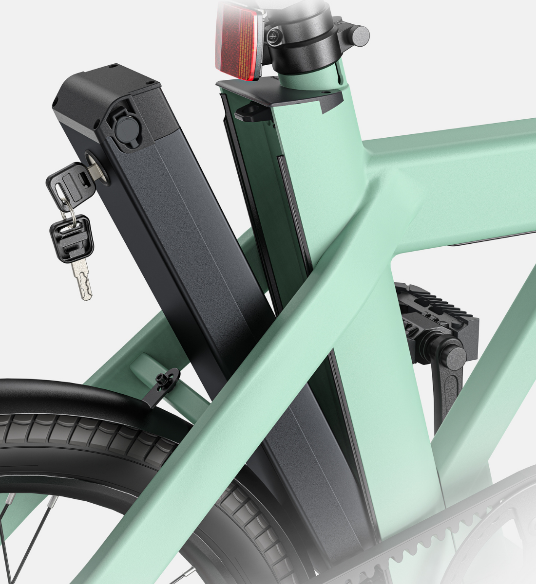 • Lighting: Integrated front LED headlight and rear turn signals enhance visibility and safety during night rides.